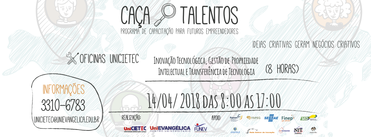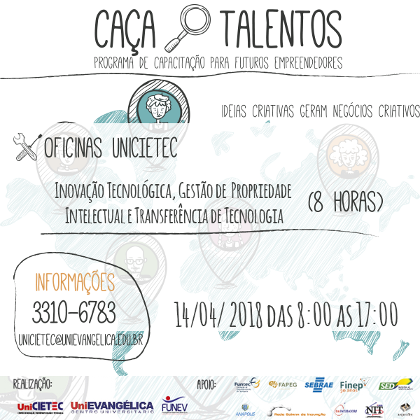 http://repositorio.aee.edu.br/handle/aee/16107| Title: | 1ª Edição do Caça Talentos - Inovação Tecnológica, Gestão de Propriedade Intelectual e Transferência de tecnologia |